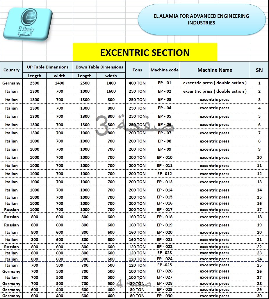Eccentric presses with capacitiy starts From 25 tons to 250 tons.